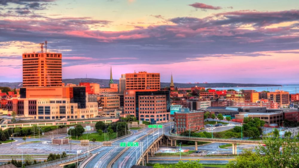 - Провинцияның ірі қалалары Ньюфаундленд астанасымен шатастыруға болмайтын Сент-Джон болып табылады. Порт мегаполисі дамыған өнеркәсіптің арқасында өңір экономикасында шешуші рөл атқарады. 1604 жылы негізделген ол қазіргі Канаданың ең ескі инкорпорацияланған қаласы саналады.