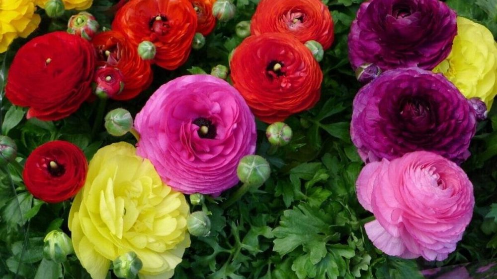 12. Лютик азиатский — Ranunculus asiaticus — является предком современных садовых ранункулюсов, широко используемых во флористике. Его густомахровые цветки диаметром до 10 сантиметров напоминают миниатюрные пионы и доступны в широчайшей цветовой палитре — от белого до почти чёрного бордового.
