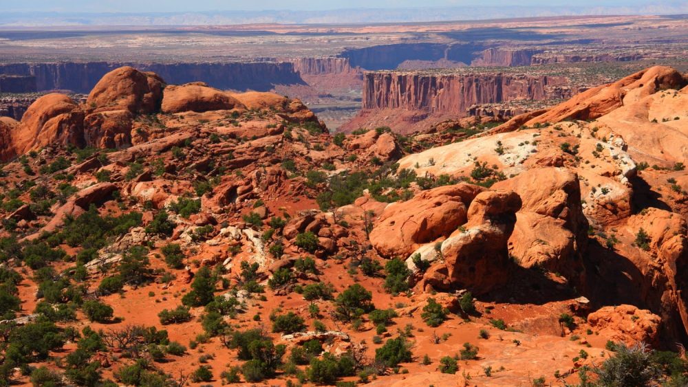 - Каньонлендс — крупнейший национальный парк штата Юта — разделён реками Колорадо и Грин на три изолированных района, между которыми нет дорог и которые можно посетить только по отдельности. Панорама слияния двух рек с обзорной точки «Остров в небе» считается одним из наиболее грандиозных видов на континенте — отсюда видно дно, расположенное почти на километр ниже.